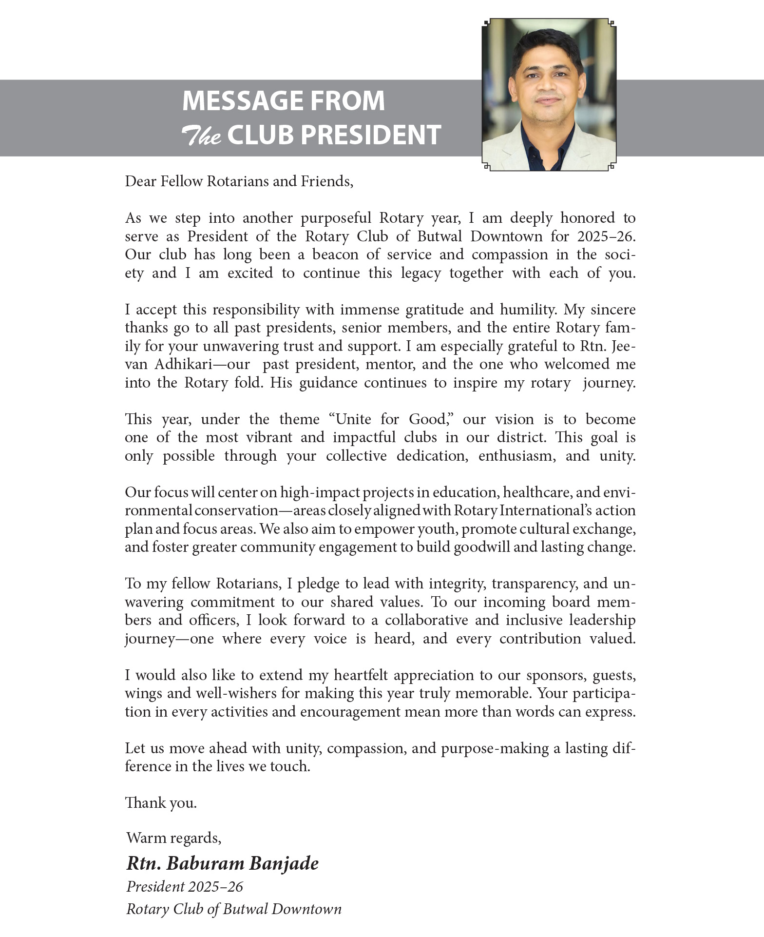 Message from Club President